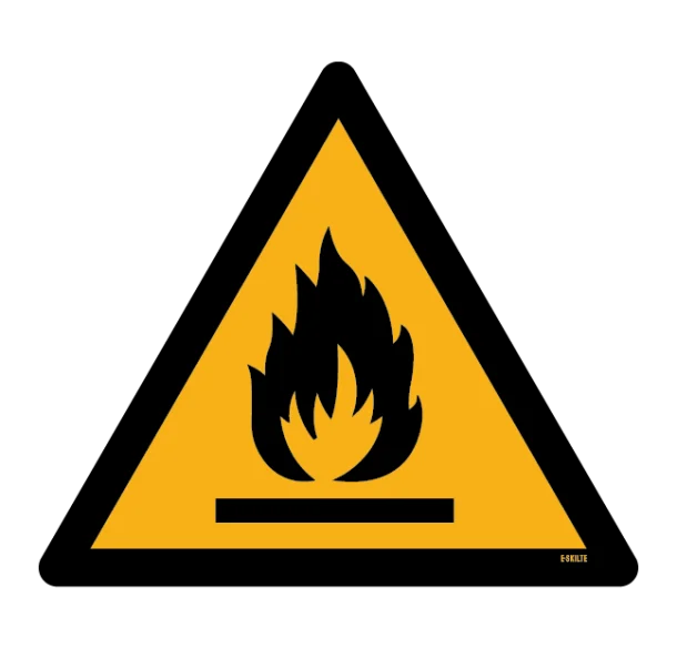 Med sit universelle design og letforståelige grafik, indikerer skiltet områder, hvor der er forhøjet risiko for ildudbrud. Det kan omfatte steder med tilstedeværelsen af letantændelige væsker, gasser eller faste stoffer, samt områder, hvor gnister eller åben ild kan forårsage hurtig brandudvikling. At placere dette skilt synligt sikrer, at medarbejdere, besøgende og kunder er bevidste om risikoen og kan handle derefter for at mindske ulykkesrisikoen.