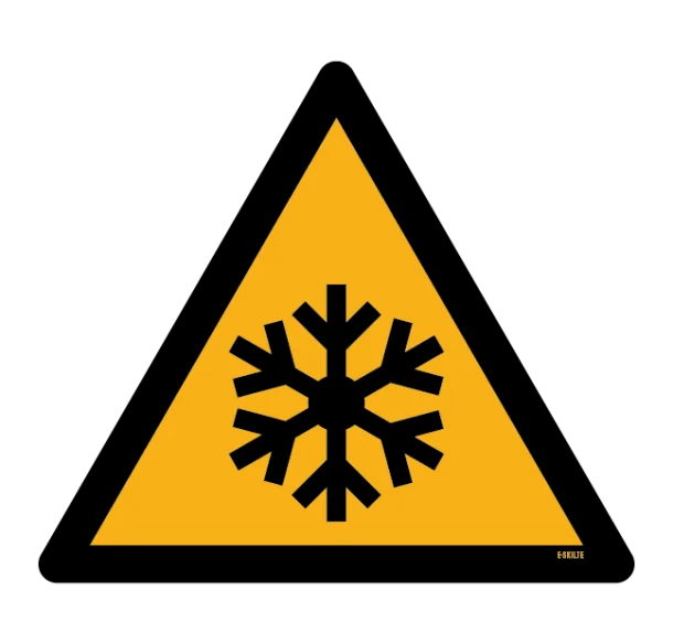 Sikkerhedsadvarsel der ikke går på kompromis: Lav temperatur/fryseforhold skilt ISO W010