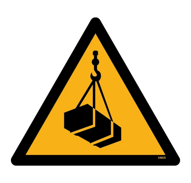 Det klare symbol og den tydelige advarselsfarve sikrer, at skiltet er let at se og forstå. Det spiller en nøglerolle i at opretholde sikkerheden og opmærksomheden i områder, hvor folk arbejder under eller i nærheden af hængende last.