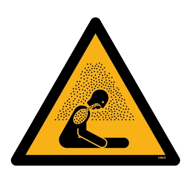 ISO 7010 standarden sikrer, at sikkerhedsskilte er nemme at genkende og forstå verden over, og dette skilt med den officielle betegnelse W041 passer ind i kategorien for advarselsskilte. Med det universelle symbol advarer skiltet effektivt mod risiko for kvælende atmosfære, som kunne opstå i industrier som kemikaliefremstilling, skibsfart eller landbrug, samt i lukkede rum som tanke og siloer.