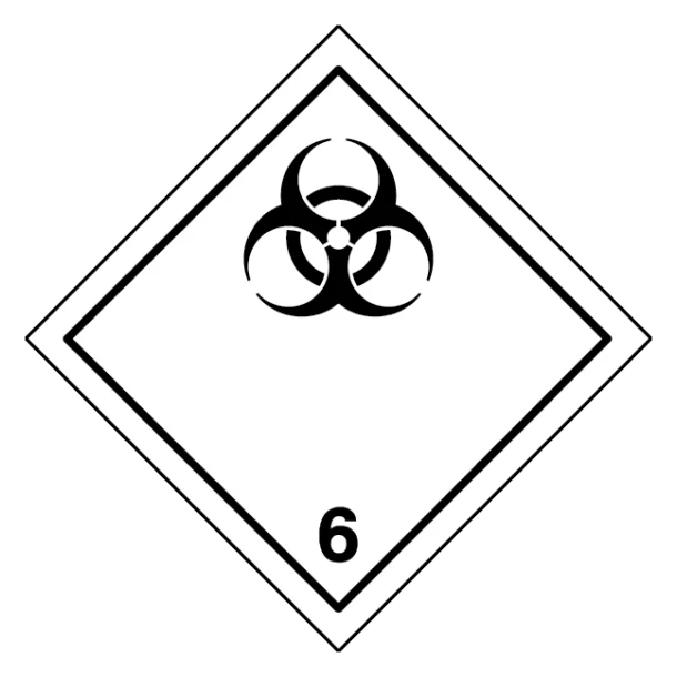 Infectious substance (Smittefarlige stoffer) klasse 6 etiketten anvendes, hvis man transporterer stoffer med særligt smittefarlig risiko.