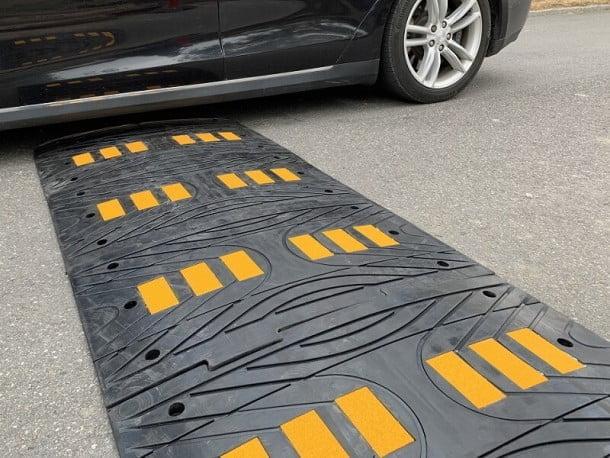 Fartbump i formfast gummi, som består af to endestykker og midtersektioner. De kommer i moduler og fås i flere forskellige størrelser.