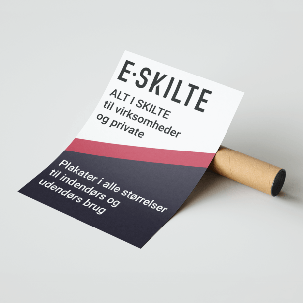 Giv dit hjem eller arbejdsplads en unik og personlig touch med Plakat med eget design fra E-skilte. Vores specialiserede plakater giver dig friheden til at skabe netop det udtryk, du ønsker, med dine egne designs, fotos eller tekst. Uanset om du vil tilføre personlighed til dit badeværelse, eller et kreativt twist til børneværelset, så tilbyder vi plakater, der passer perfekt til din stil og behov.
